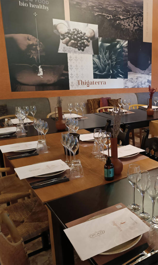 Το βραβευμένο εστιατόριο Thigaterra, The art of slow food εστιάζει και επιδιώκει το καλό, καθαρό και δίκαιο φαγητό από το στάδιο της παραγωγής μέχρι την παρουσίαση στο τραπέζι σου. Αποτελεί ταυτοχρόνως τον τόπο εκείνο όπου ο πρωτογενής τομέας έχει τον πρώτο λόγο και συνομιλεί απευθείας μαζί σου.